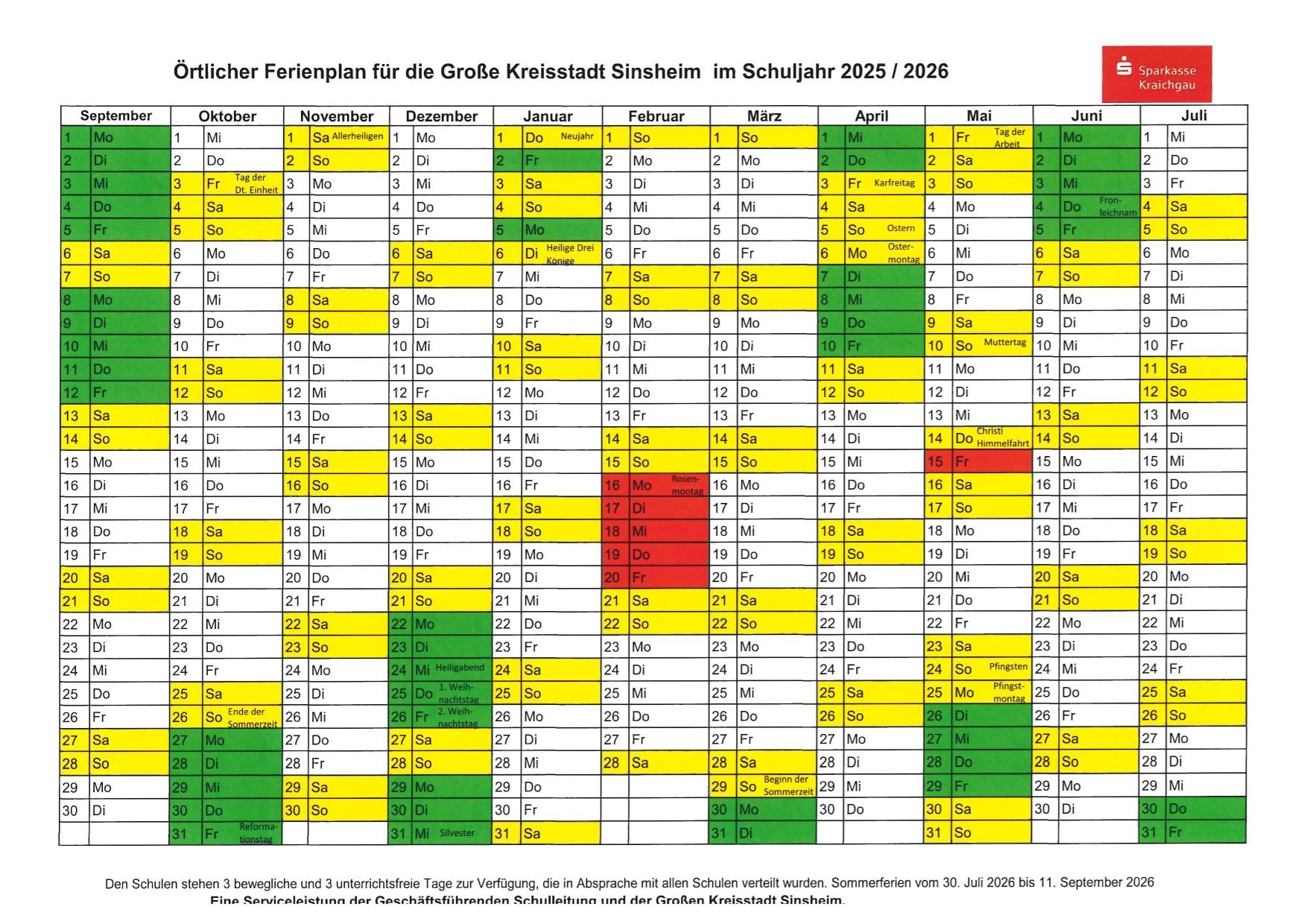 Sommerferien 26 | 4.-6. Woche | 24.08.-11.09.2026 | 17.07.2026 |