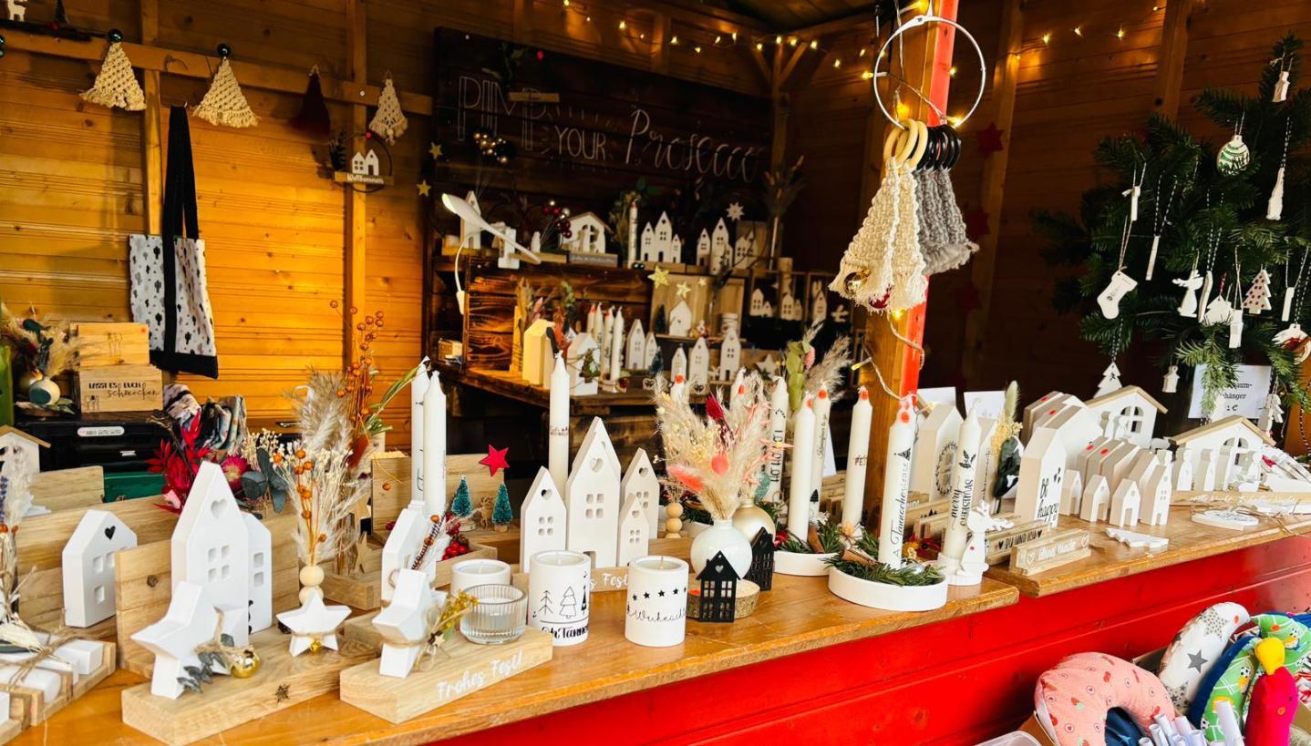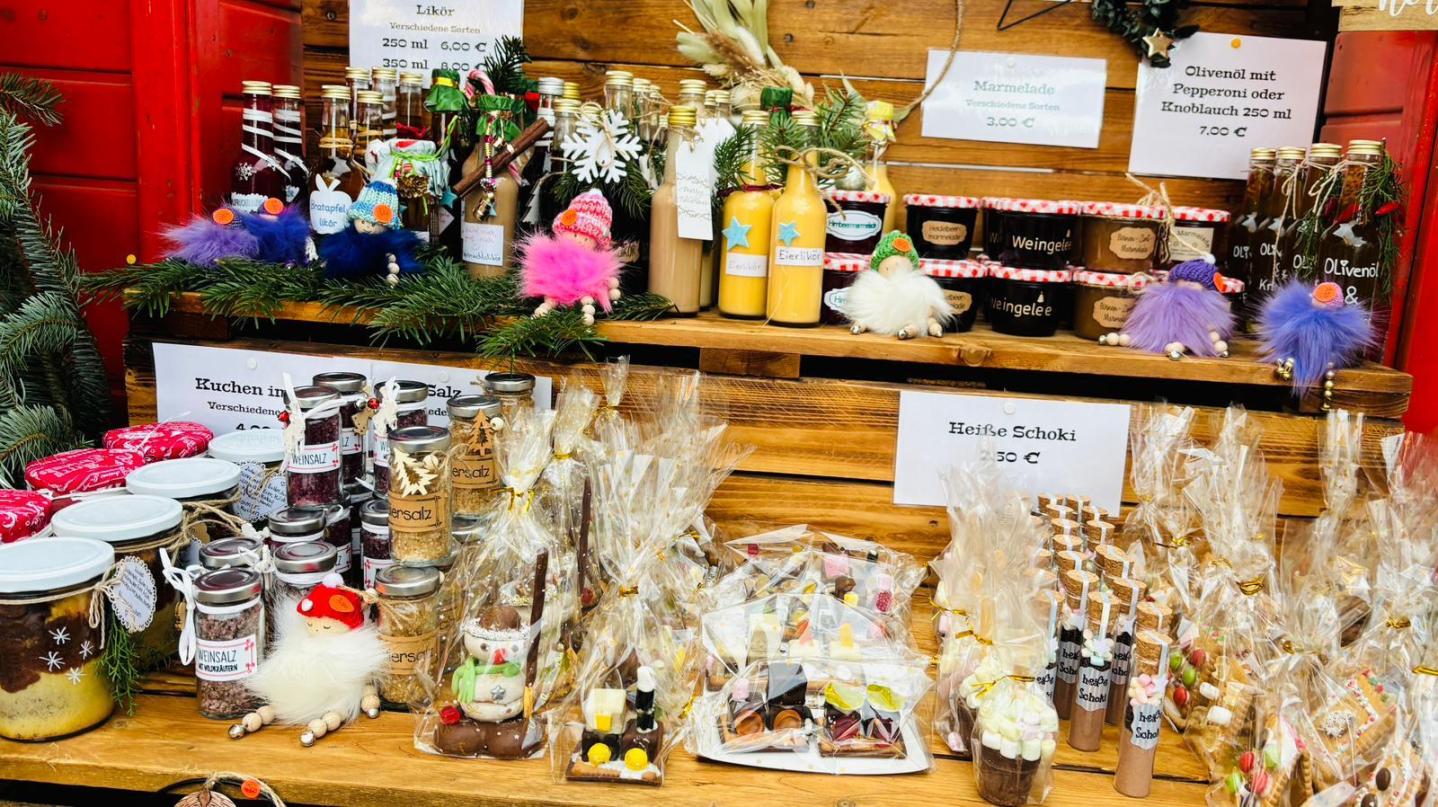 Im Rathaus bietet die Grundschule Selbstgebasteltes und Selbstgemachtes von den Kindern zum Verkauf. Der Förderverein hat seinen Stand mit heißen Getränken und allerlei Selbsthergestelltem vor dem Bäcker / Metzger.